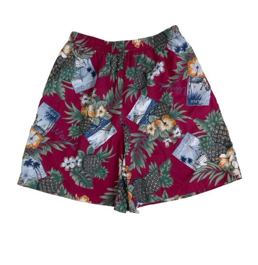 VTG 'HILO HATTIE' PINK GREEN BLUE FLORAL PINEAPPLE PATTERN HAWAIIAN SHORTS S M