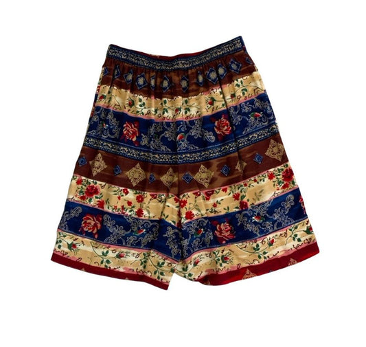 VTG 90s 'TR BENTLEY' RED BROWN BEIGE FLORAL STRIPED CASUAL HOIDAY BEACH SHORTS S