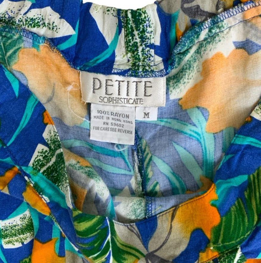 VTG 'PETITE SOPHISTICATE' BLUE ORANGE GREEN FLORAL HONG KONG HAWAIIAN SHORTS M L