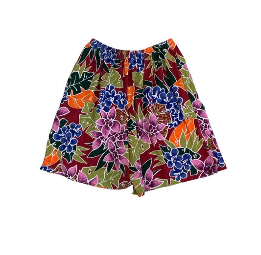 VTG HIGHT-WAISTED COLOURFUL FLORAL PATTERN HAWAIIAN SURF BEACH SHORTS (ONE SIZE)