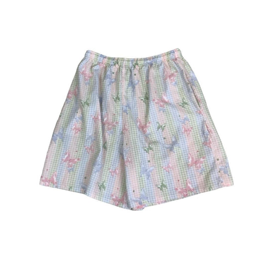 VTG 90s y2k 'BLAIR' PASTEL BUTTERFLY STRIPES PINK BLUE GREEN CASUAL BEACH SHORTS