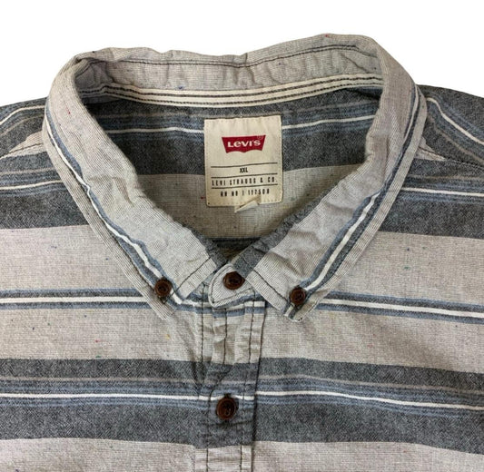 LEVI'S AUTHENTIC GREY BLUE STRIPE BUTTON-DOWN SHORT SLEEVE SHIRT LARGE 45"