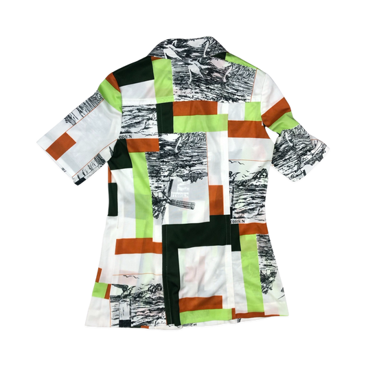 Vintage 80s 90s White Abstract Colourful Print Blouse 8