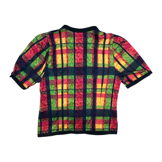 Vintage 80s 90s Plaid Print Multicolour Blouse 8
