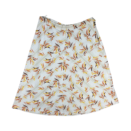Vintage 60s 70s White Botanical Print A-line Skirt 12