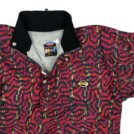 Vintage 80s 90s Crazy Pattern Black & Red Pullover Windbreaker Jacket