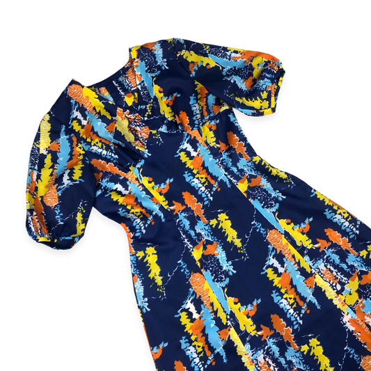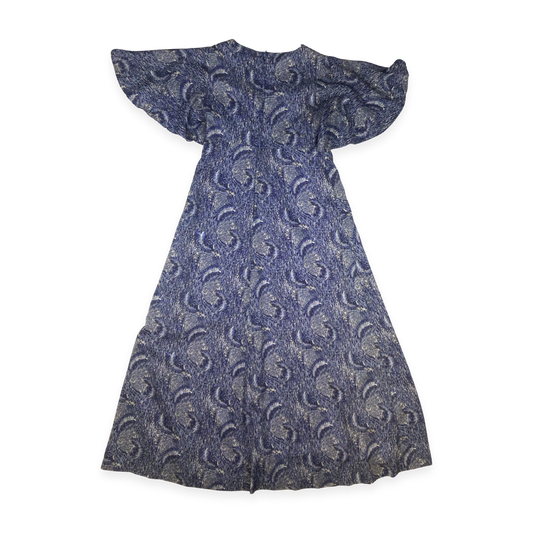 Vintage 70s Blue Abstract Print A-line Maxi Dress 12