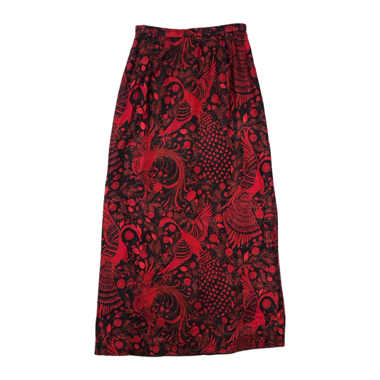 Vintage Red Paisley Bird Peacock Print Skirt 10