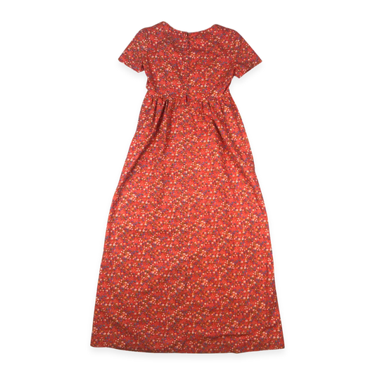 Vintage 60s 70s Red Floral Print Maxi Dress 12