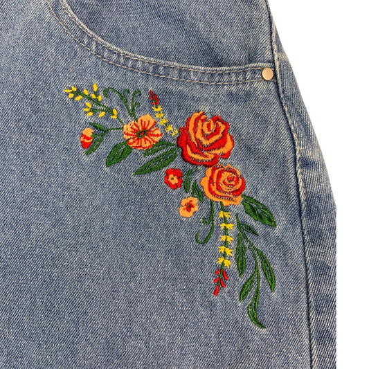 Vintage 90s Embroidered Blue Denim Mini Skirt 10