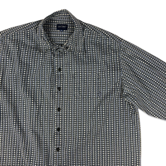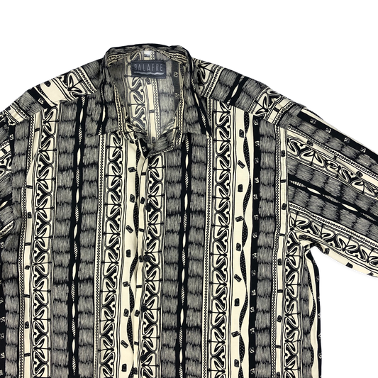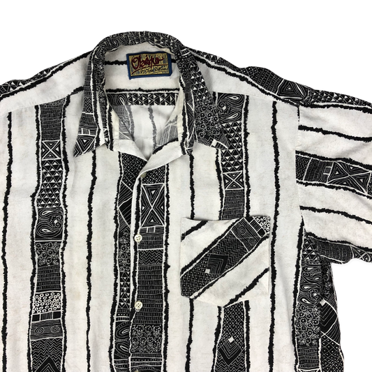 Vintage 80s Abstract Print Striped Black and White Shirt L