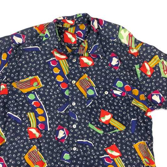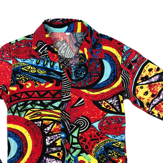 Vintage 80s Multicolour Crazy Print Shirt XS