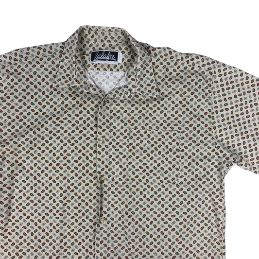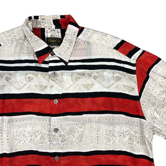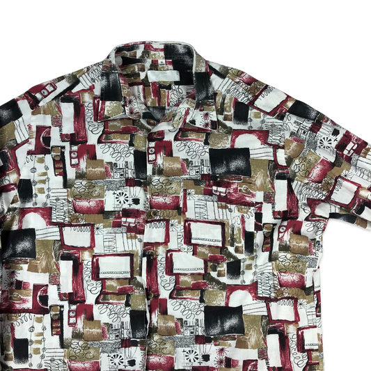 Vintage White, Red, and Black Abstract Print Shirt XXL