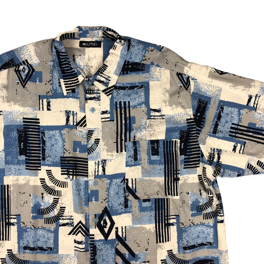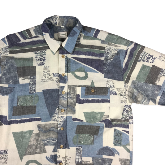 Vintage Canda Blue and White Abstract Print Shirt XL