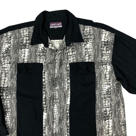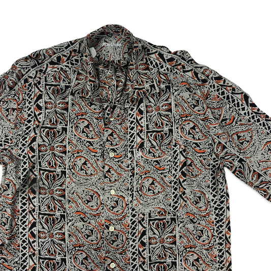 Vintage Black, Grey, and Orange Abstract Print Shirt XL