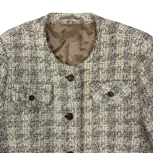 Vintage Ladies White Brown Tweed Jacket 12 14
