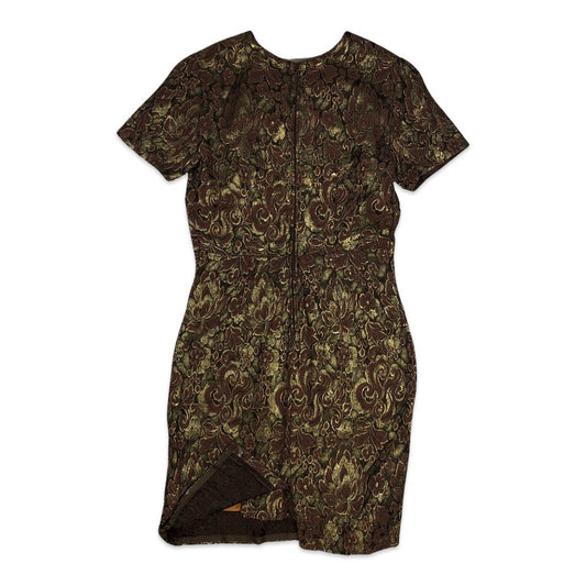 Vintage Evening Dress Gold Brown Paisley Brocade 8 10