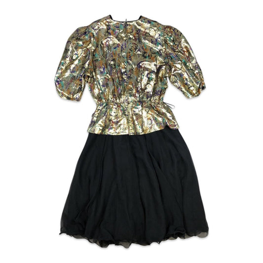 Vintage Black Gold Paisley Print Lurex Party Dress 10 12 14 16