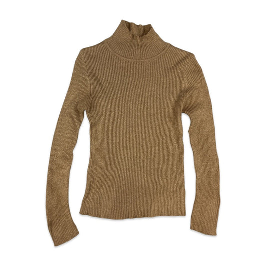 Vintage Ribbed Lurex Turtleneck Top Peach Gold 4 6