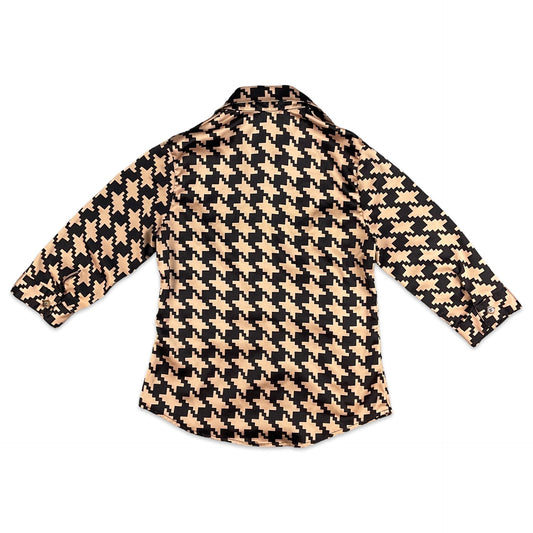 Vintage 90s Brown Cream Houndstooth Fitted Blouse 8 10