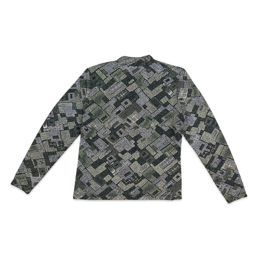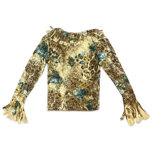 Vintage 90s Brown Teal Beige Long Sleeve Netted Floral Top 6 8 10