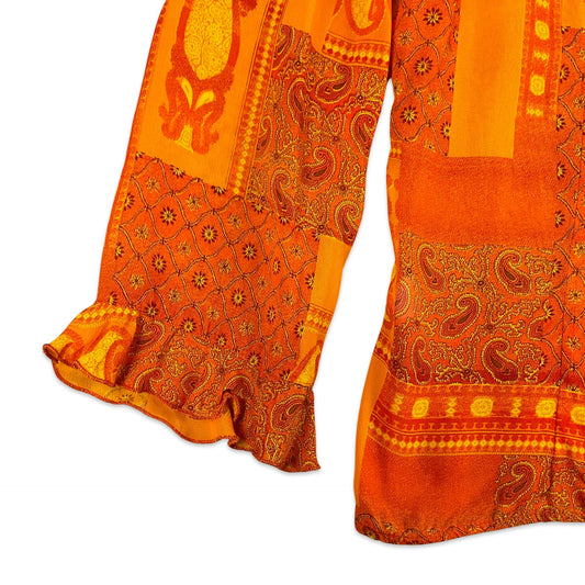 Vintage 90s Orange Paisley Blouse 10 12 14