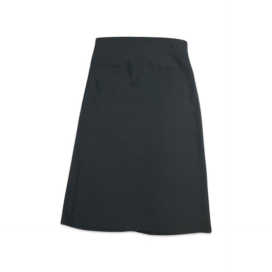 Vintage 90s Black Aline Midi Skirt with Silver Buckle Belt 6 8