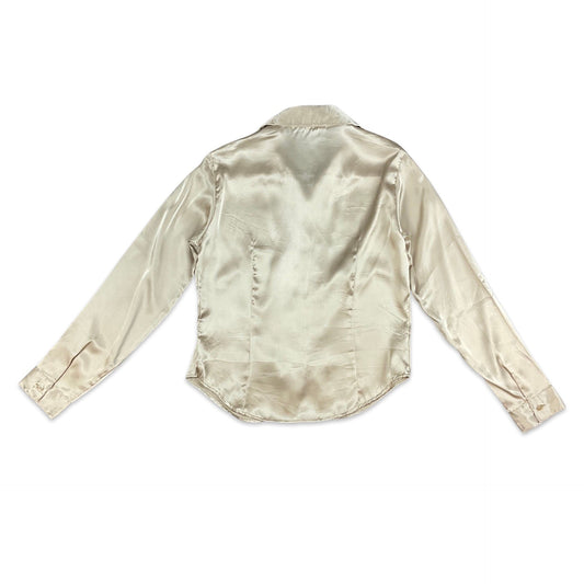 Vintage 90s Gold Champagne Satin Blouse 8 10
