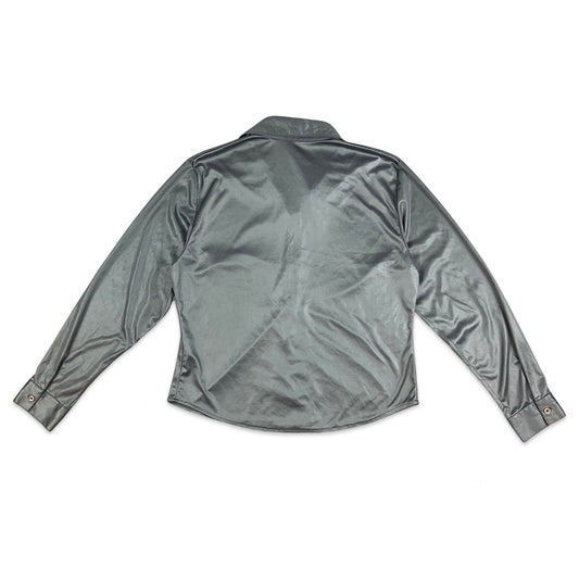 Vintage 90s Grey Silver Metallic Fitted Blouse 10 12 14