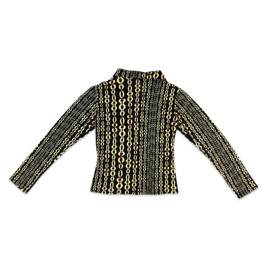 Vintage 90s Black Yellow Red Sheer Blouse 6 8 10