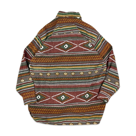 Vintage Red White & Green Aztec Print Flannel Shirt S M
