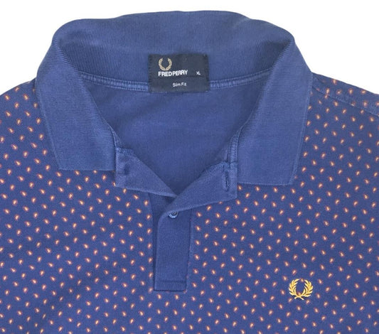 VTG FRED PERRY PAISLEY PRINT BLUE RED POLO NECK SHIRT LARGE