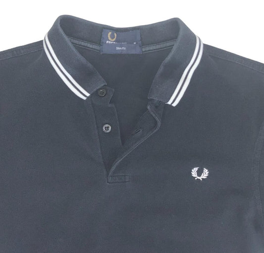 VTG FRED PERRY BLACK WHITE TWIN TIPPED M3600 POLO NECK SHIRT SMALL