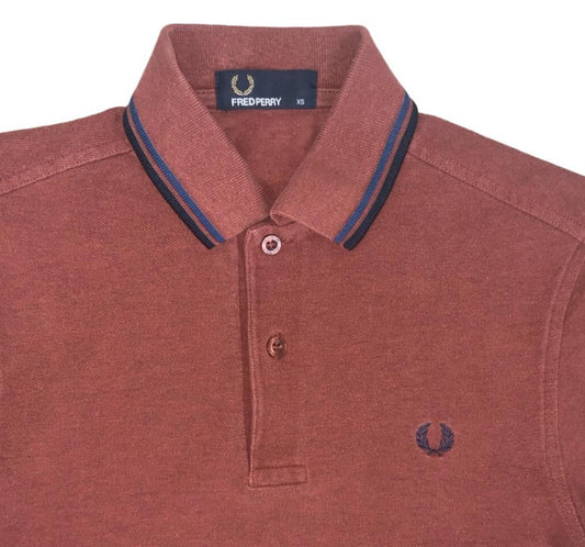 VTG 90S FRED PERRY M1200 TWIN TIPPED BURGUNDY RED POLO NECK SHIRT SMALL