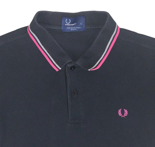VTG FRED PERRY BLACK PINK GREY TWIN TIPPED M3600 POLO NECK SHIRT MEDIUM