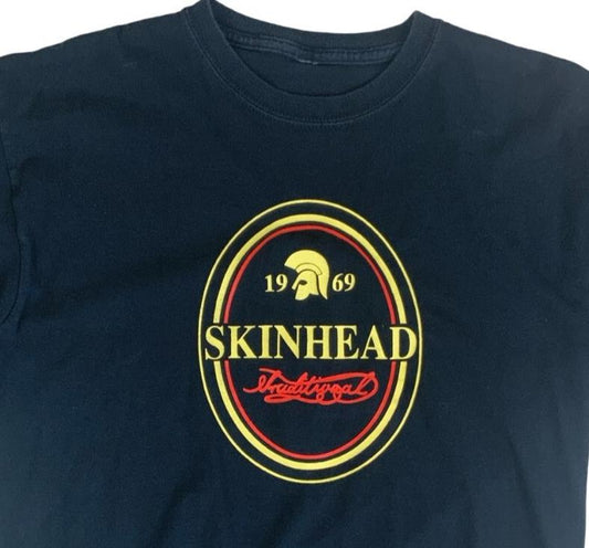 VTG 90S "1969 SKINHEAD" ISISH STOUT BLACK PUNK ANTI-FASCIST GRAPHIC TEE S