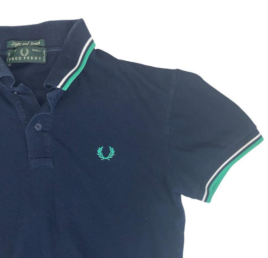 VTG 90S FRED PERRY BLUE WHITE GREEN TWIN TIPPED POLO NECK SHIRT SMALL