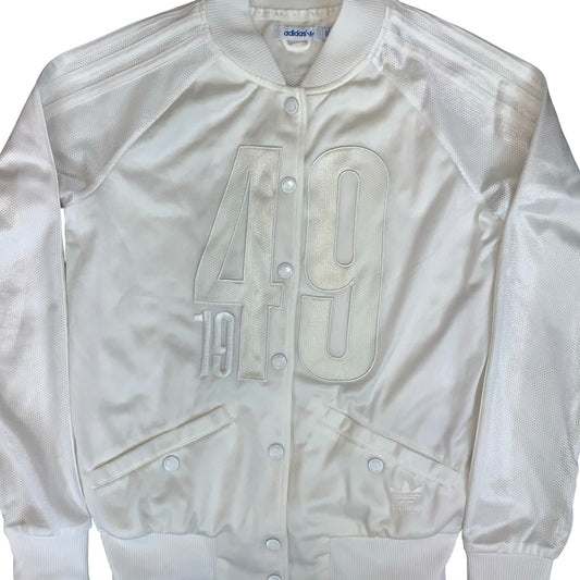VTG 'ADIDAS' WHITE '1949' EMBOSSED SNAP BUTTON WOMENS BOMBER TRACK JACKET M 12