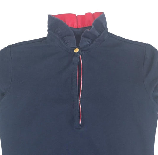 VTG MONCLER WOMENS NAVY BLUE DESIGNER POLO NECK SHIRT SMALL