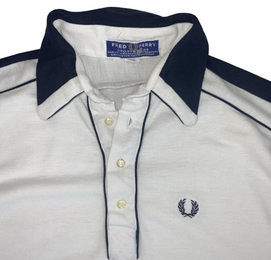 VTG 90S FRED PERRY WHITE BLUE SPORTSWEAR POLO NECK SHIRT SMALL