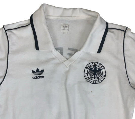 VTG ADIDAS WHITE GERMANY RETRO FOOTBALL POLO NECK SOCCER JERSEY SHIRT S