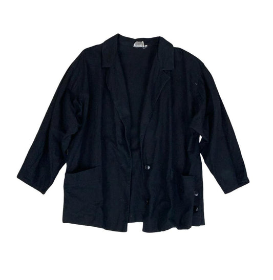 VTG 80s 90s LUISA SPAGNOLI WOMENS BLACK LINEN BLAZER JACKET UK 14 16
