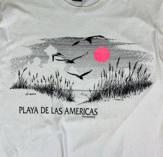 VTG 90S WHITE PLAYA DE LAS AMERICAS TENERIFE BEACH GRAPHIC SINGLE STITCH TEE L