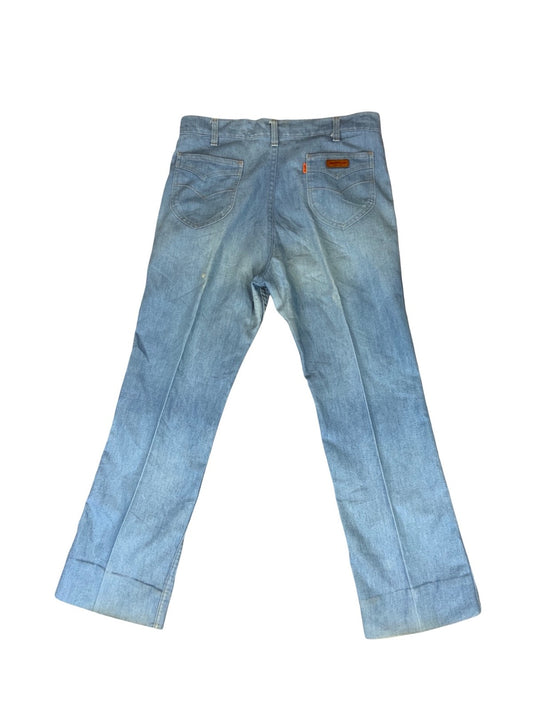 RARE VTG 70s LEVIS FOR MEN ORANGE TAB LIGHT DENIM FLARES JEANS MENS 34” W 31” L