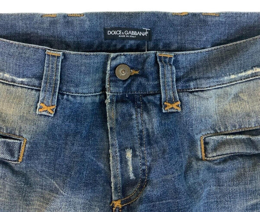 VINTAGE DOLCE AND GABBANA DISTRESSED STRAIGHT LEG JEANS MID BLUE WASH 38W 33L