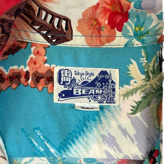 VTG BEAM TOKYO CREPE RAYON HAWAIIAN ALOHA SHIRT 50s SUNSURF TIKI ROCKABILLY S 38