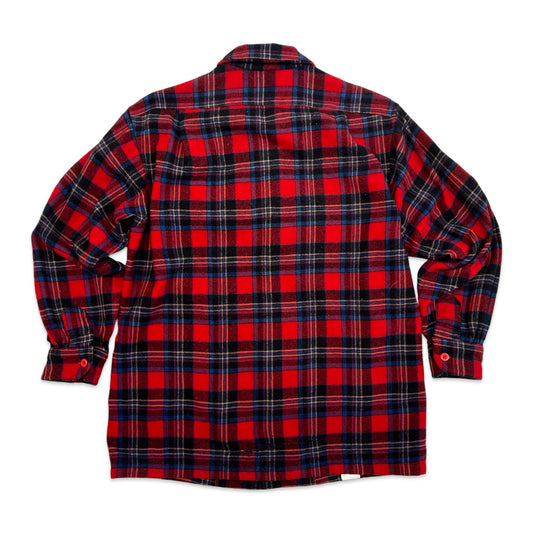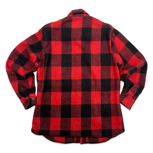 VTG 1960s USA THICK WOOL CPO JACKET SHIRT CHECK PLAID ROCKABILLY HOT ROD S 38”