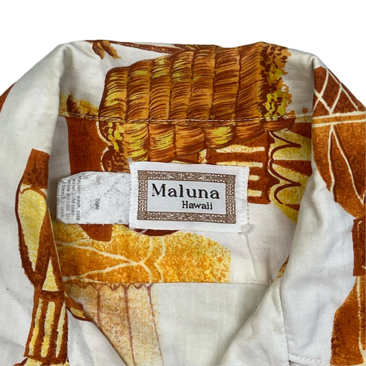 VTG 1960s MALUNA HAWAIIAN MADE ALOHA SHIRT COTTON TIKI ROCKABILLY S 38”
