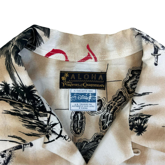 GENUINE RARE COLLECTIBLE DISNEY PIRATES OF CARIBBEAN HAWAIIAN ALOHA SHIRT S 36”