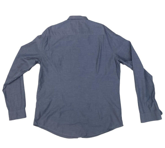 VINTAGE 90s 00s ARMANI JEANS BLUE GREY LONG SLEEVED BUTTON UP SHIRT EXTRA LARGE